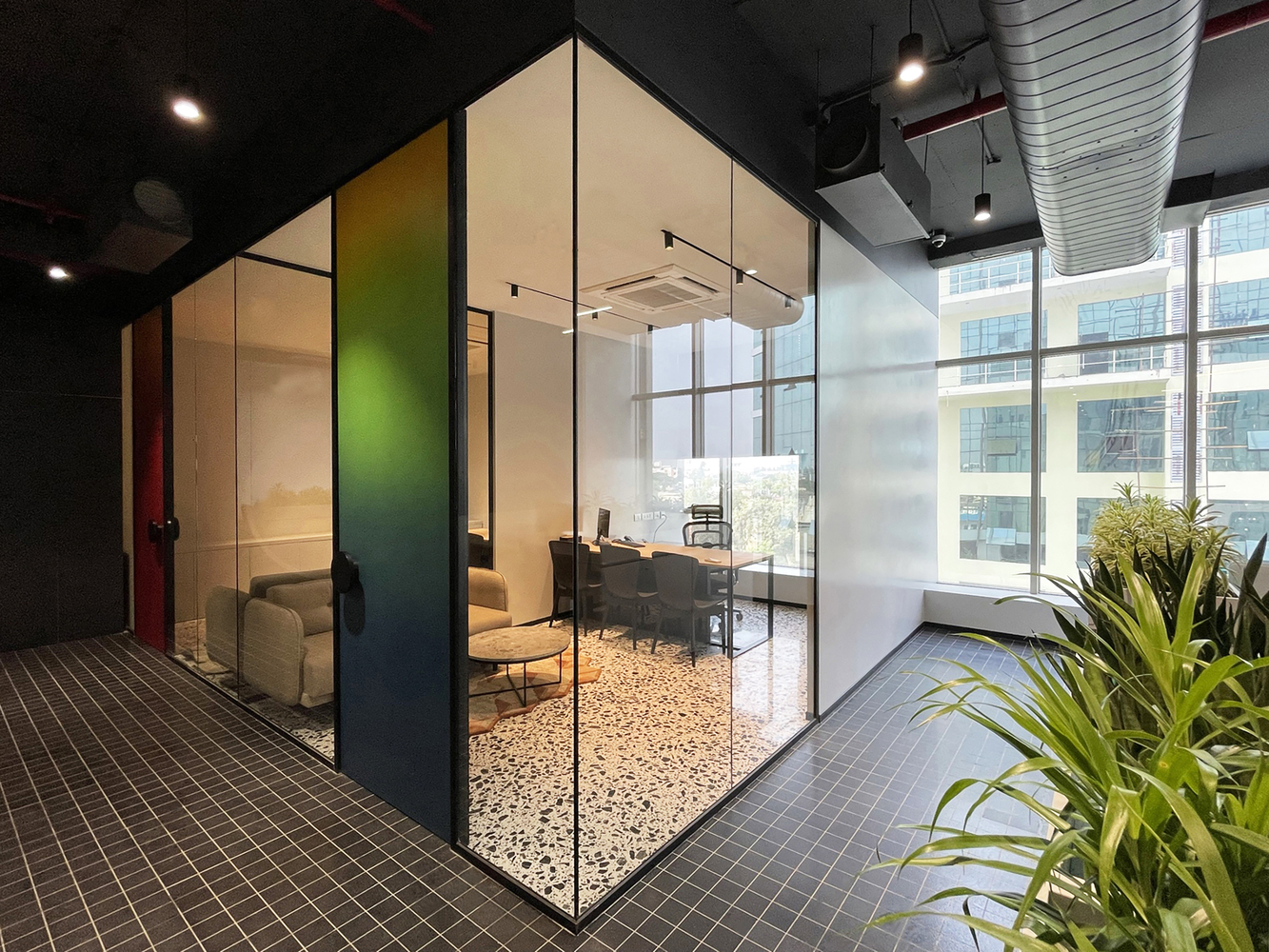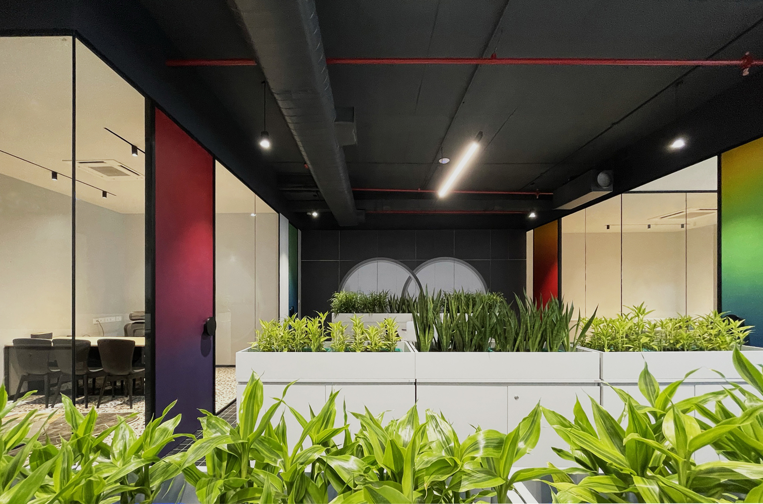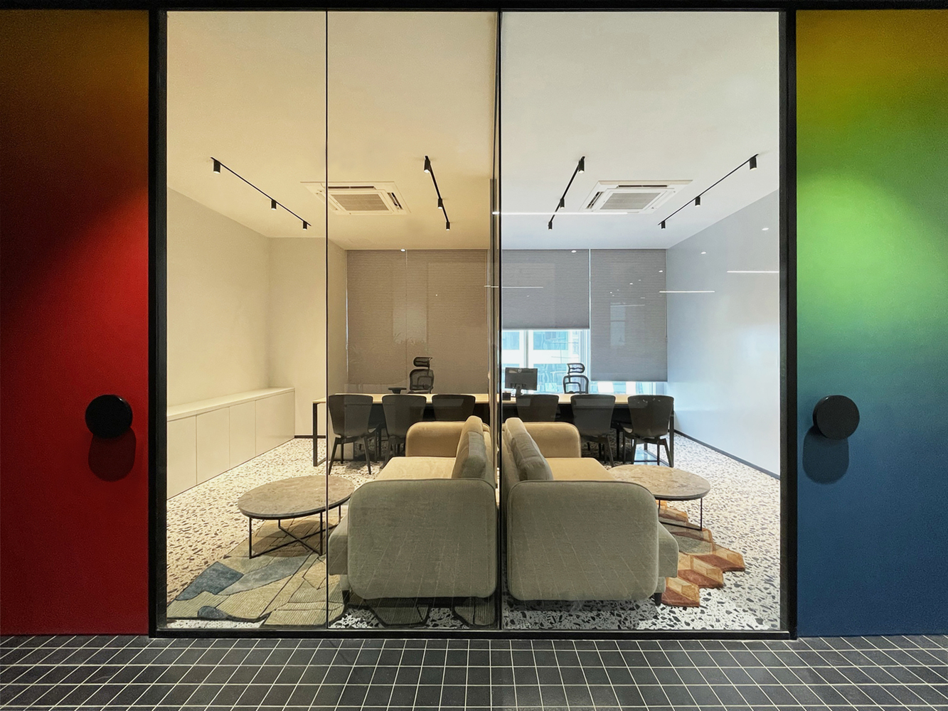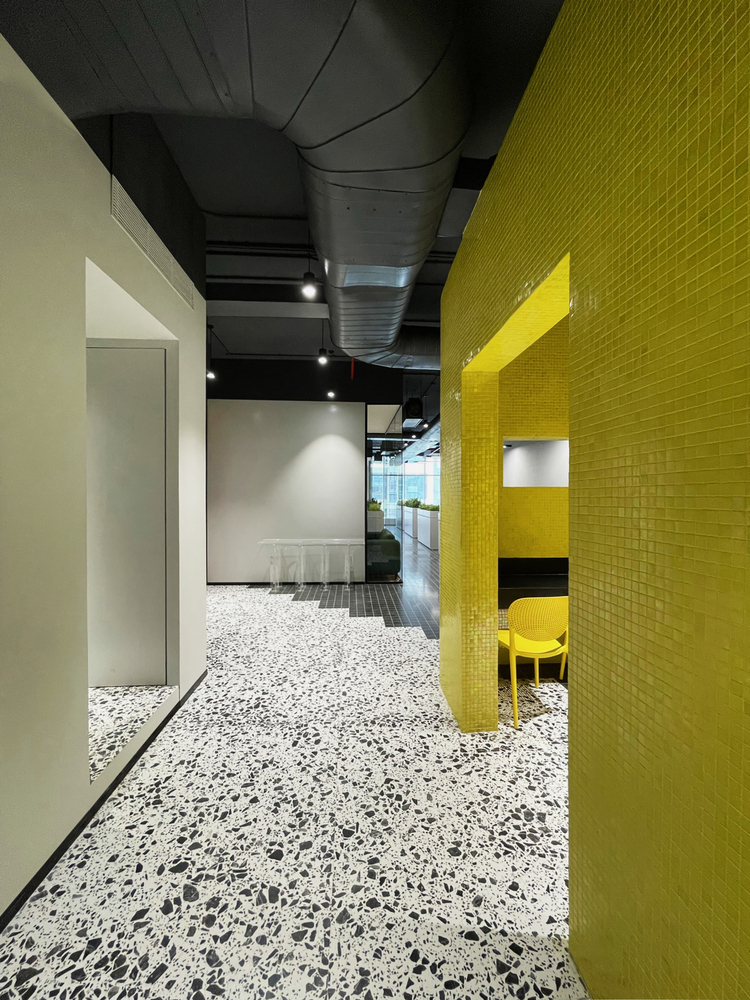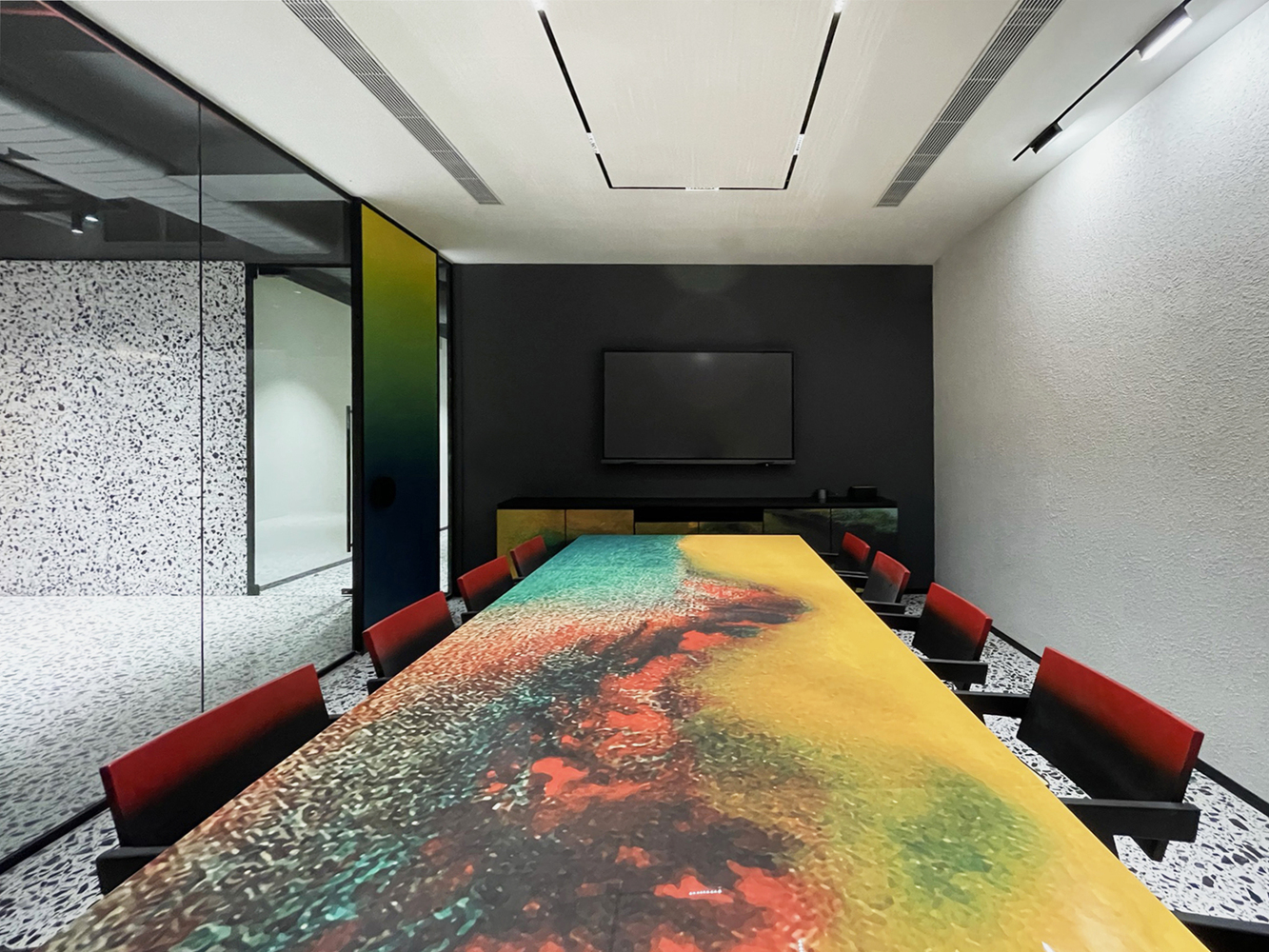 An explosion of texture, color, and form, this design studio celebrates creative chaos with intentional precision. From terrazzo-clad surfaces to gradient glass and sculptural furniture, every element is a conversation starter. Playful yet poised, the space reflects a fearless design ethos where boundaries blur, ideas collide, and creativity thrives unapologetically.