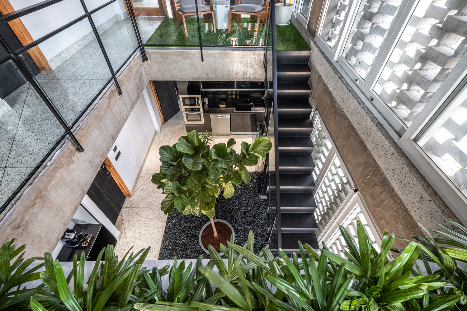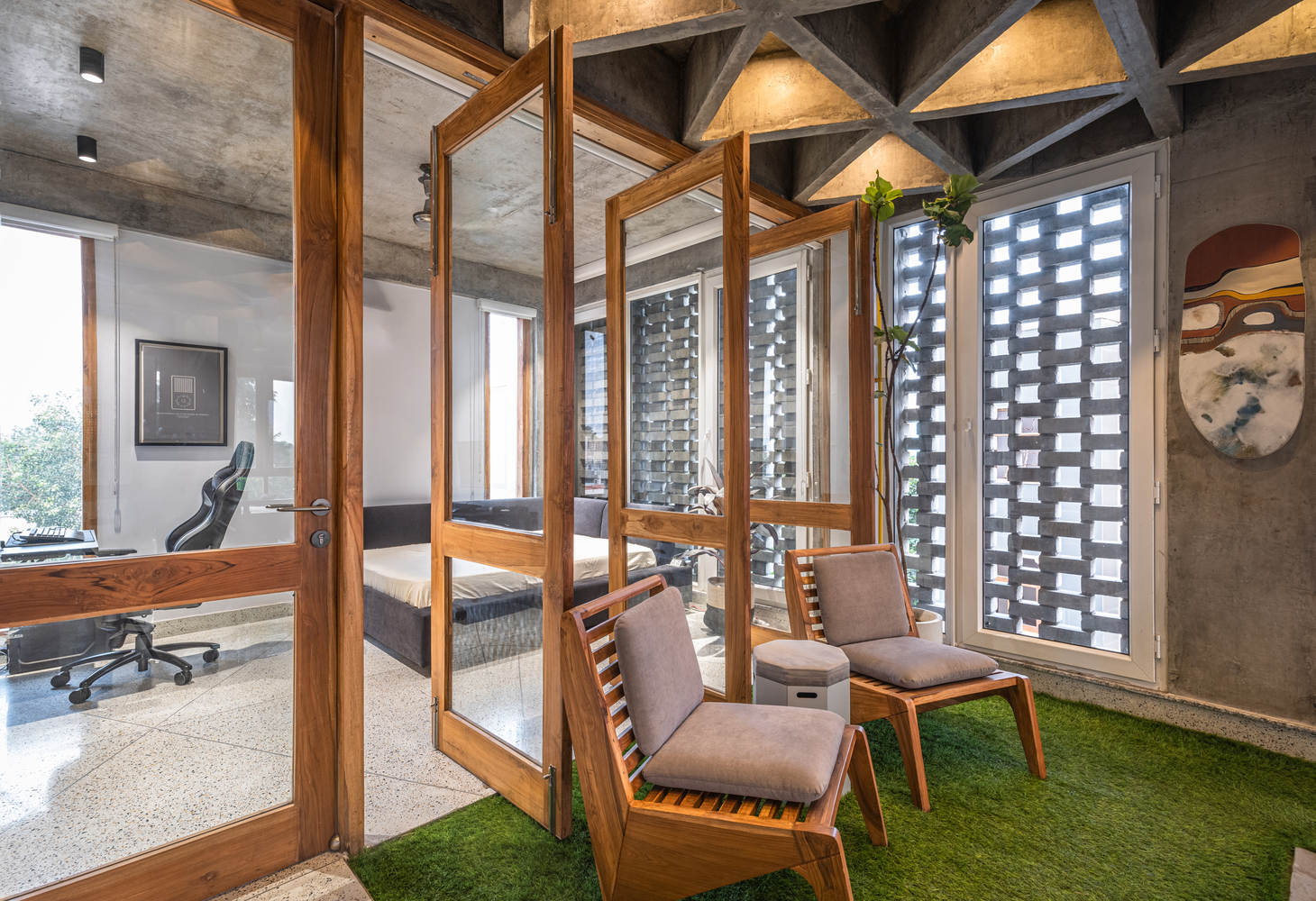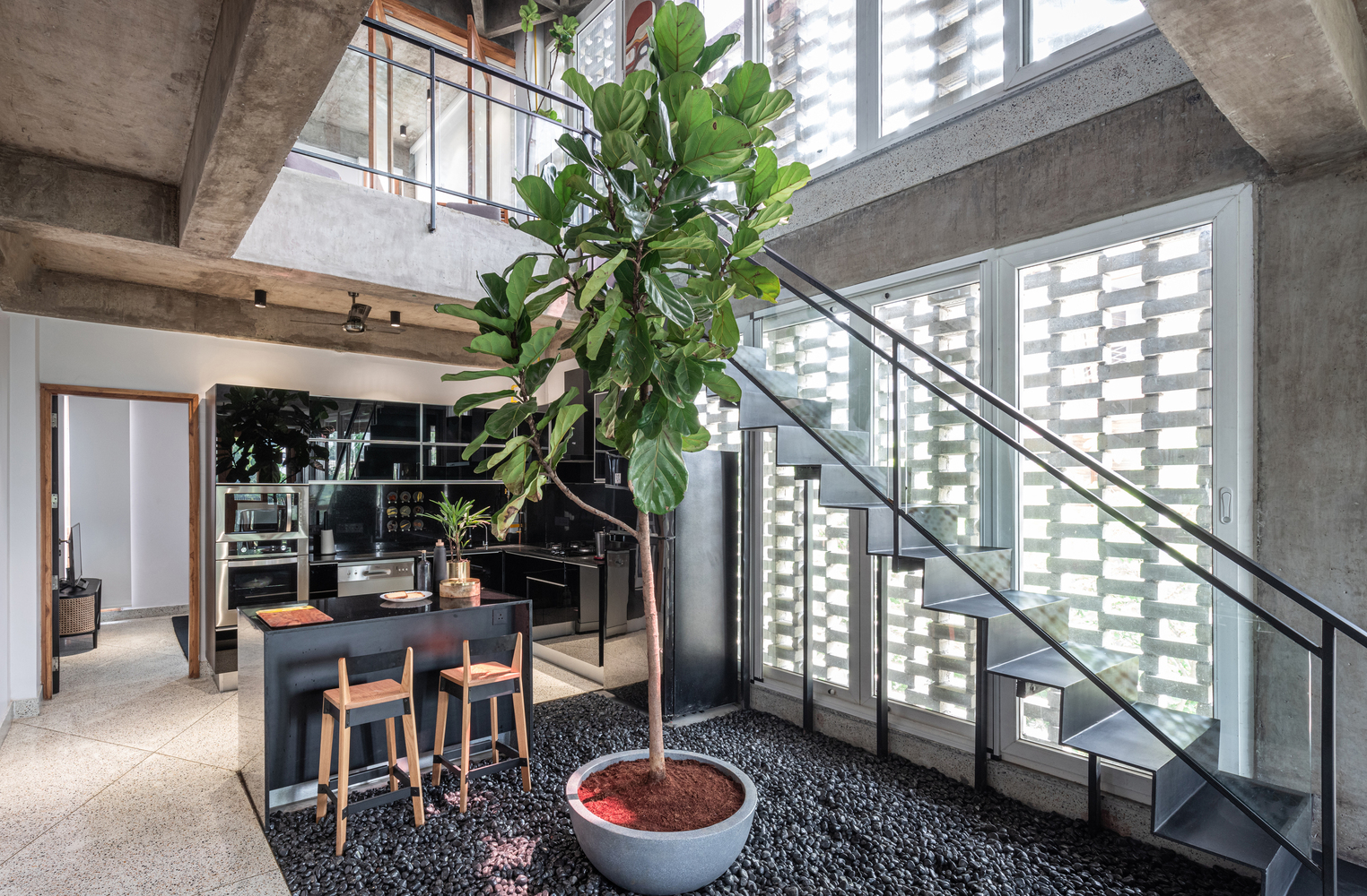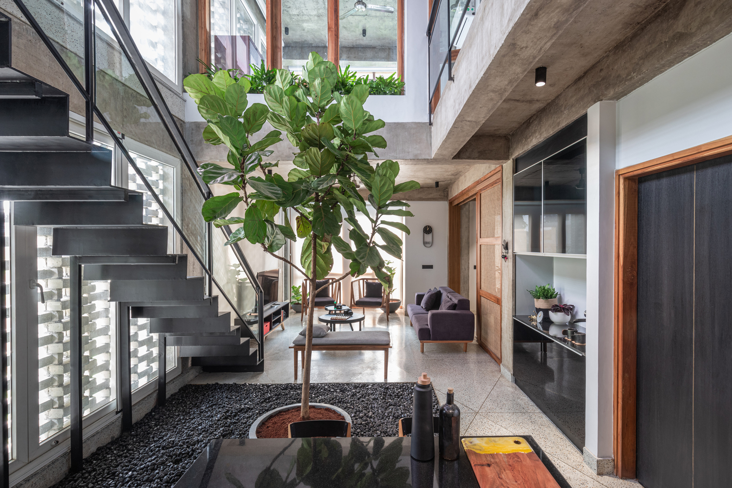Courtyard Echo is a serene bungalow villa designed around the rhythm of open-to-sky spaces. Anchored by a central courtyard, the home blurs the line between indoors and outdoors inviting in light, breeze, and nature. Earthy materials, soft textures, and timeless architecture come together to create a space that feels grounded, calm, and deeply connected to its surroundings. Courtyard Echo Kerala